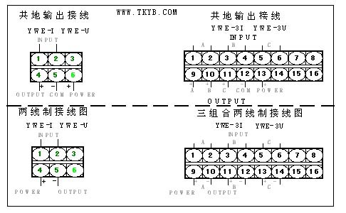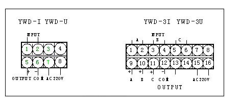 2、YWD、YWE系列電流變送器只允許通過小于10A的電流,超過10A時,只能選擇YWF-I型產品。