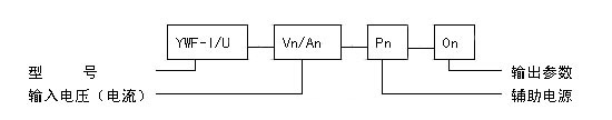 An 輸入電流 | A1 0~1A | A2 0~5A | A3 0~10A | A4 0~30A | A5 0~50A | 注: A4、A5、 A6、A7、 A8 僅適合于YWF類結構的產品。 | |||||||||||